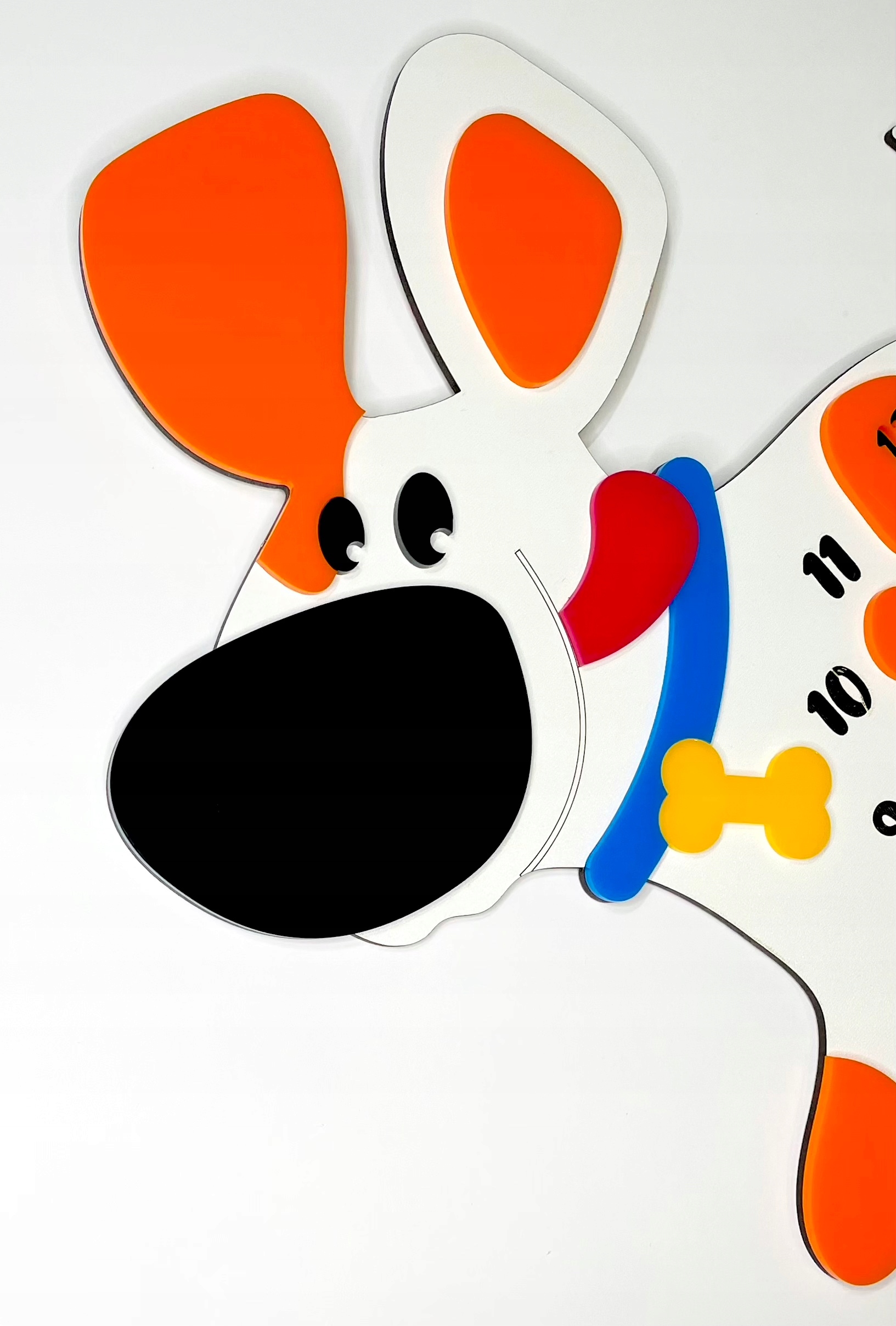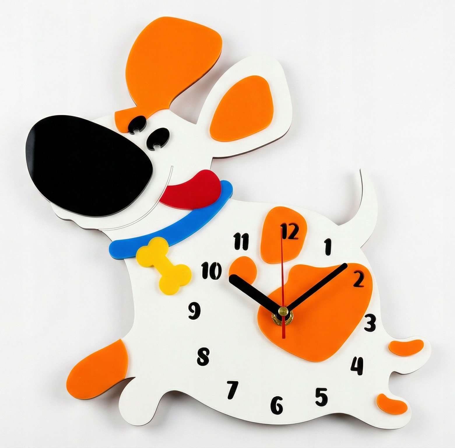 Настенные часы «Собака» для детской комнаты с изображением пятнистой собаки – очаровательное дополнение, которое легко оживит любой детский интерьер. Фигурка веселого, дружелюбного пса выполнена в теплом сказочном стиле, а ее большой круглый живот служит циферблатом. Благодаря этому все выглядит как милая игрушка, которая к тому же учит ребенка ориентироваться во времени.