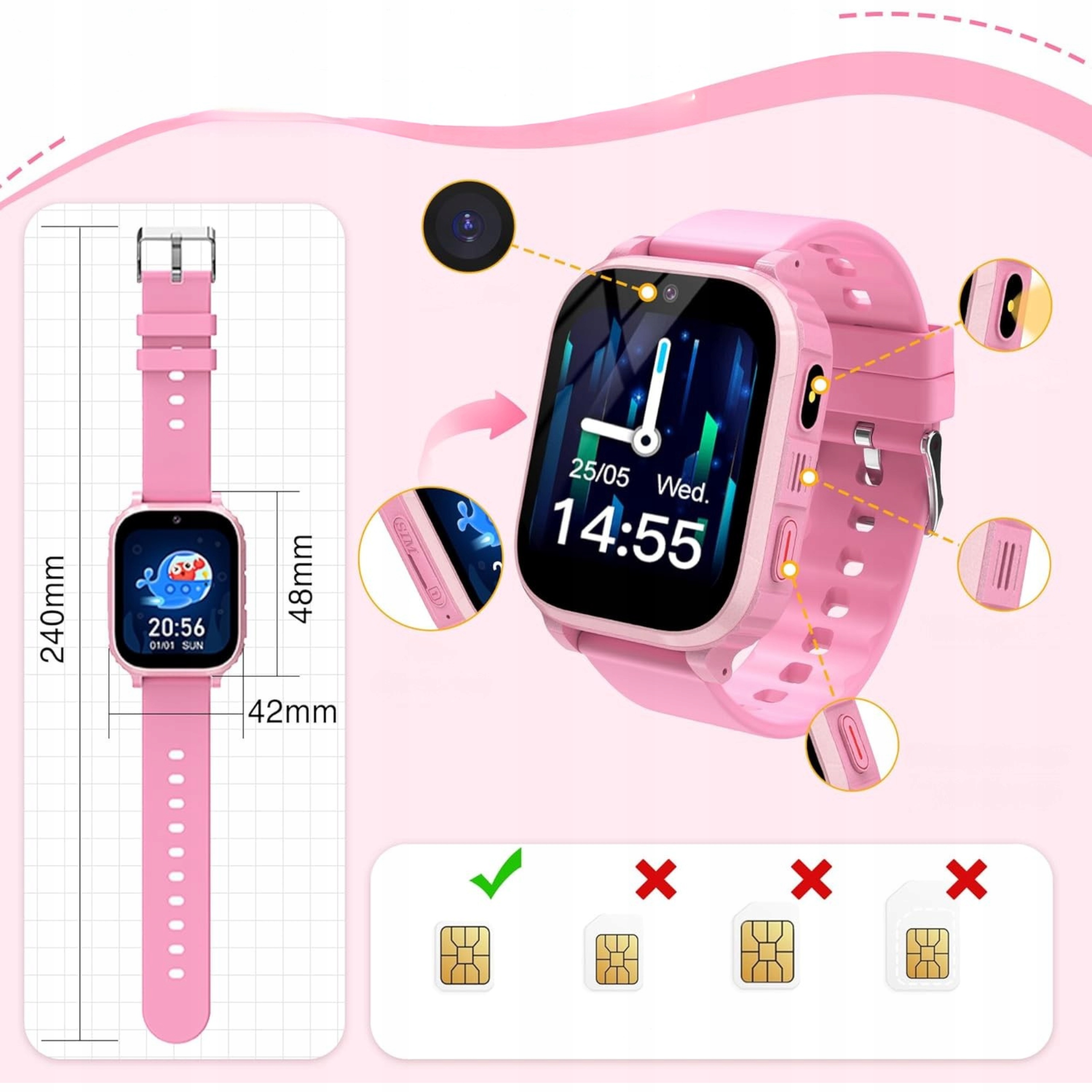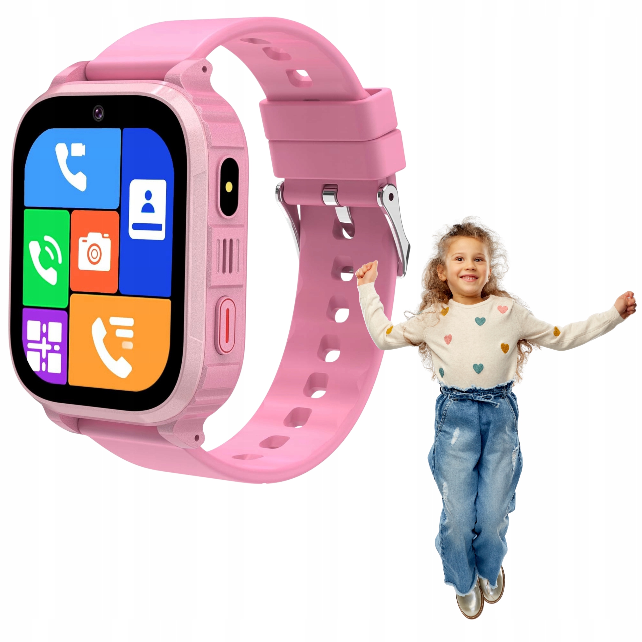 ⭐ Умные часы для детей 4G Pink — видеозвонки, GPS, IP68, звонки, сообщения, фонарик, камера, будильник, школьный режим