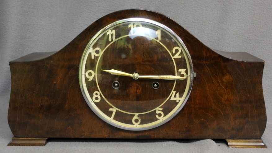Механизм подписанный, функциональный, отбивает половину и полные часы на спиральном гонге.
