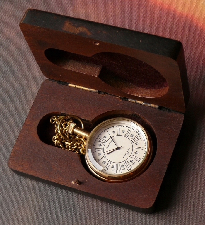 ГОДИННИК КИШЕНЬКОВИЙ ЛАТУННИЙ НА ЛАНЦЮЖКУ В ПОДАРУНКОВОМУ ЧОХЛІ