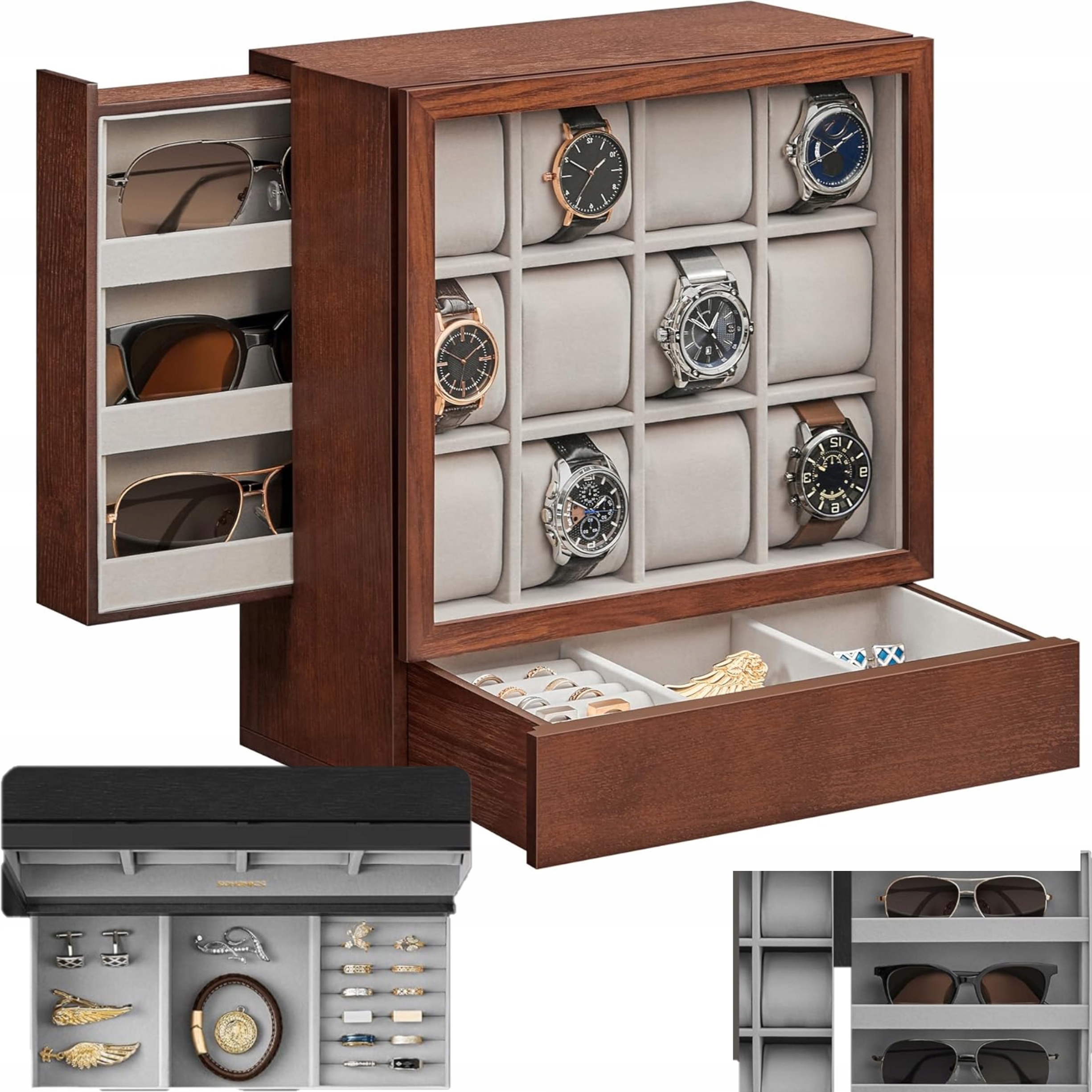 КОРОБКА ДЛЯ ЧАСОВ ВИТРИНА-ОРГАНИЗАТОР ДИСПЛЕЙ ДЕРЕВЯННЫЙ ПОДАРОК 12 шт.