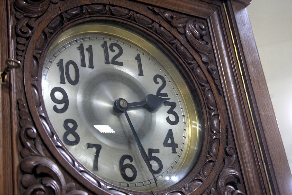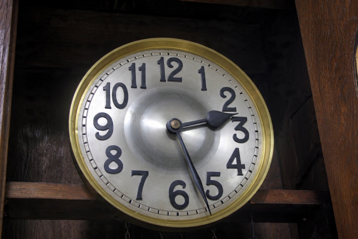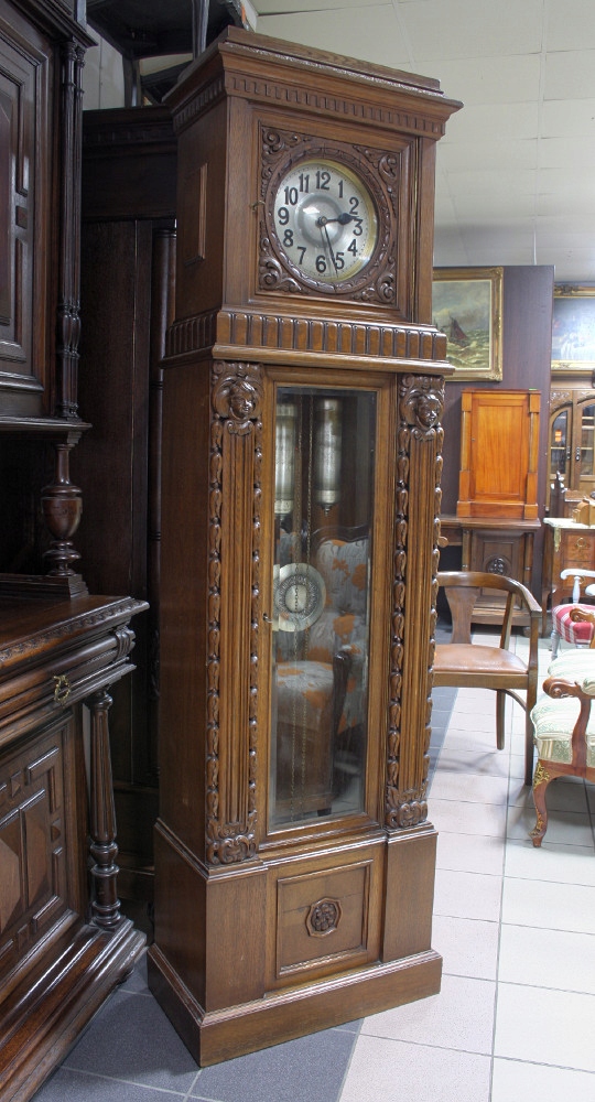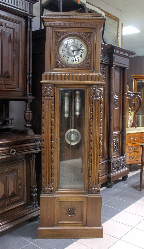 Часы крестьянские стоячие. Большой, декорированный дубовый сундук, полированное стекло. Механизм подписан Фридрихом Мауте Швеннингеном, 1920-е годы.