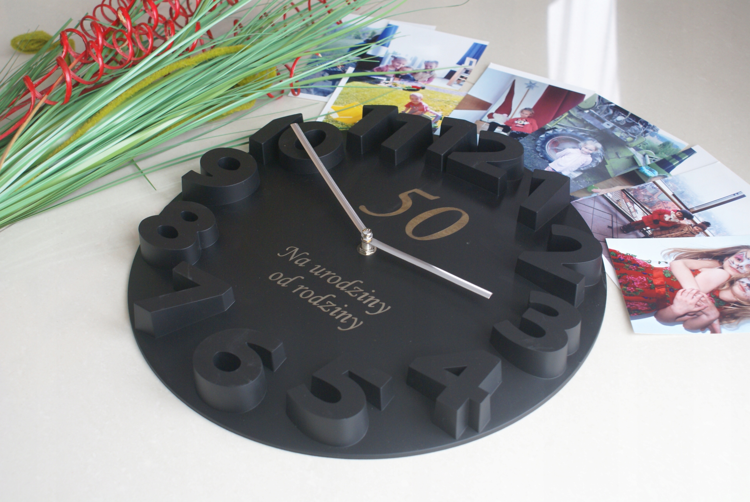 Годинник настінний великий чорний 350мм з вашим написом 3D цифри в подарунок