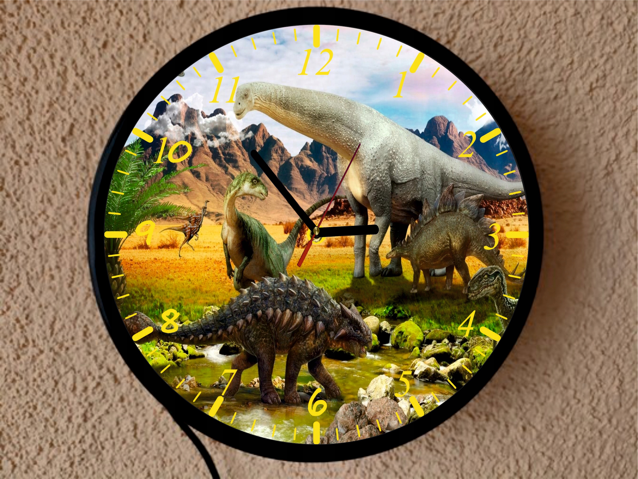Часы на батарейках (входят в комплект) с циферблатом с подсветкой от сети, узор ДИНОЗАВРЫ
