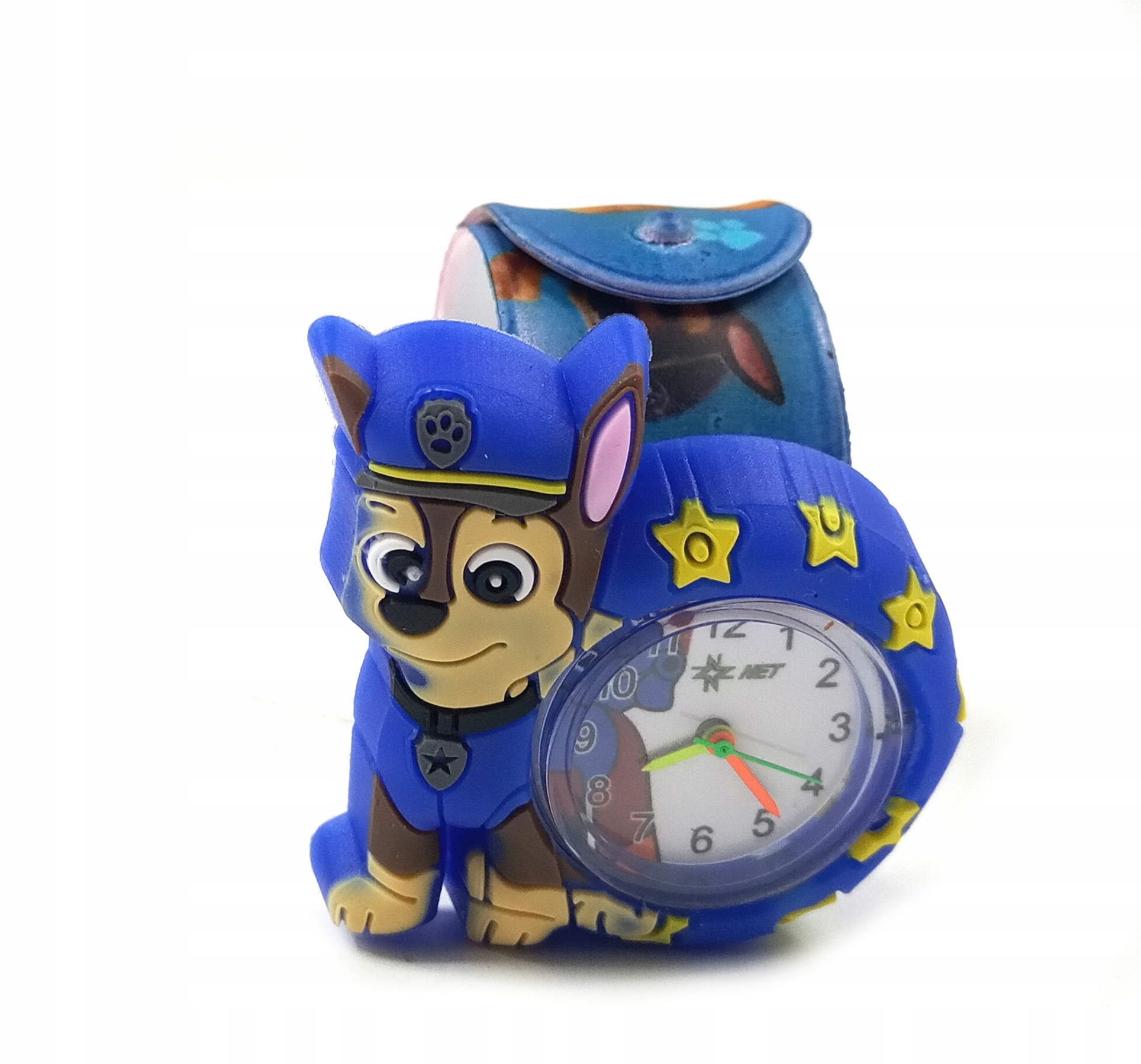 Часы имеют циферблат с цифрами и цветными стрелками. Циферблат окружен силиконовым материалом, на котором изображен один из 6 персонажей мультсериала «Щенячий патруль».