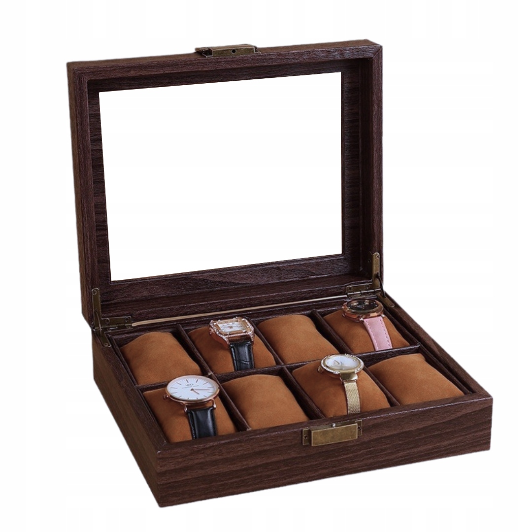 - -типа «Подобная отделке» : элегантный шпон, дающий классический вид. b>: 100% прозрачное стекло, которое обеспечивает долговечность и эстетику. Это обеспечивает быстрый предварительный просмотр часов и ювелирных изделий. /b>: Позвольте вам хранить не только часы и браслеты, но и другие аксессуары