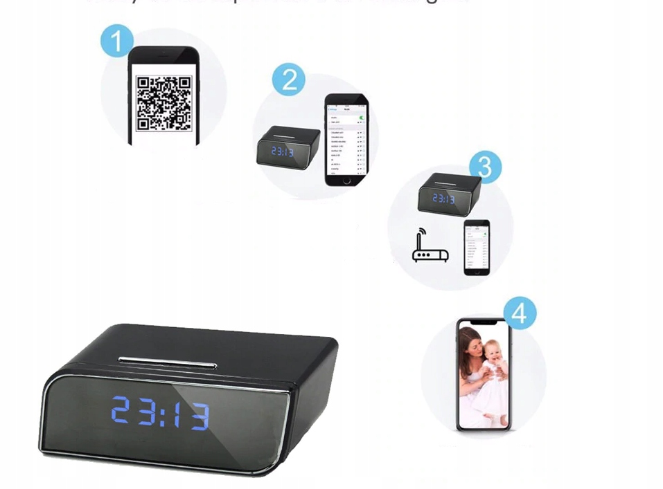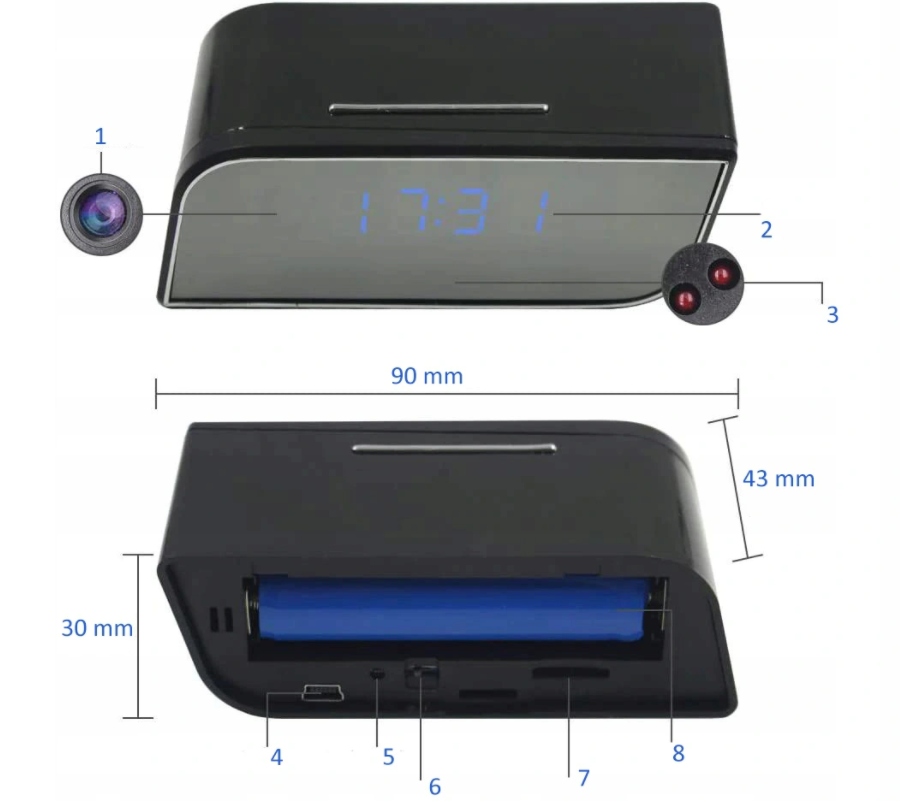 ГОДИННИК З МІНІ ШПИГУНСЬКОЮ КАМЕРОЮ WiFi ПРИХОВАНИЙ БУДИЛЬНИК З КАМЕРОЮ
