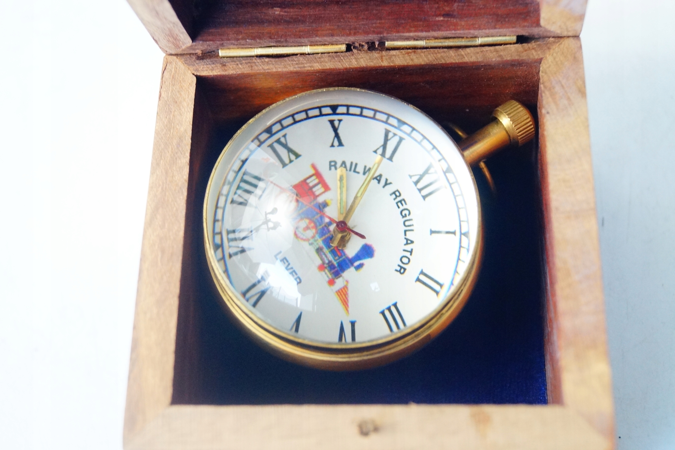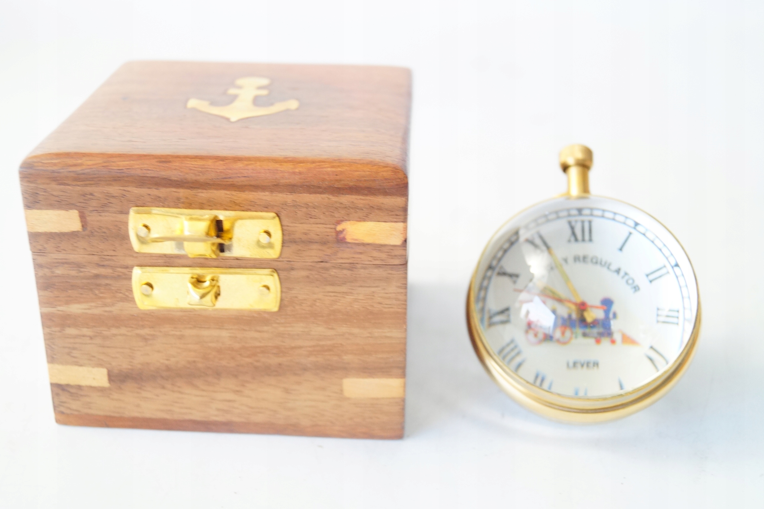 Часы со стеклянным шаром, латунь, коробка в морском стиле.