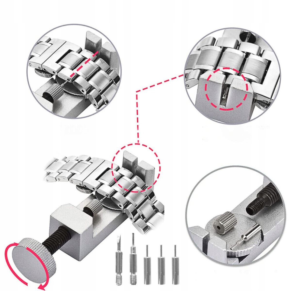 - Например, инструменты для снятия звеньев часов, пружинные стержни (108 шт.), пробойные иглы, открыватели корпусов часов и многое другое. инструменты.