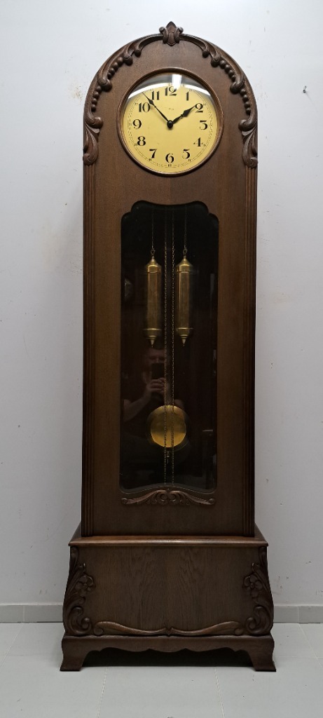 ЭЛЕГАНТНЫЕ, В ОТЛИЧНОМ СОСТОЯНИИ (ПОСЛЕ РЕМОНТА КОРПУСА И ПРОВЕРКИ СТОРОЖОМ) НАПОЛЬНЫЕ ЧАСЫ, ТАК НАЗВАННАЯ БАБА, ОЧЕНЬ ХОРОШАЯ НЕМЕЦКАЯ КОМПАНИЯ KIENZLE, ОКОЛО 1920 ГОДА