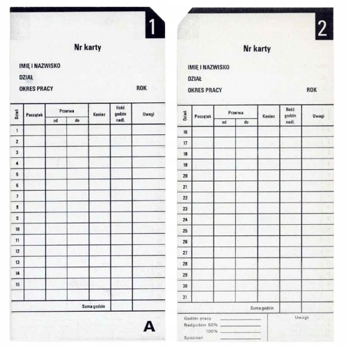Карты часов, реестр рабочего времени -QR -312, QR550