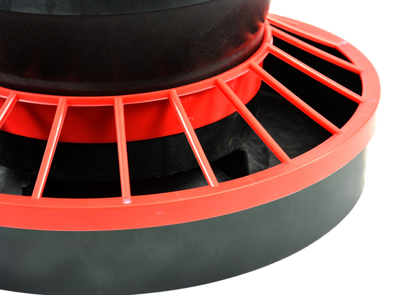 Поилка изготовлена из сырья высочайшего качества, что делает еедолговечной и устойчивой. к солнечному свету и воде. Его очистка и дезинфекция очень просты. Поилка соединена с красной чашей посредством скользящего замка, который предотвращает случайное разъединение двух частей. Поилка имеет ручку, позволяющую удобно переносить поилку и подвешивать ее в курятнике.