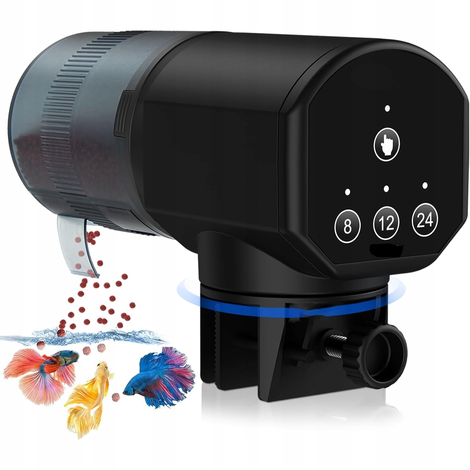 • 3 режима кормления (каждые 8/12/24 часа) – регулируйте частоту в соответствии с потребностями рыб (для мелких видов рекомендуется каждые 24 часа).