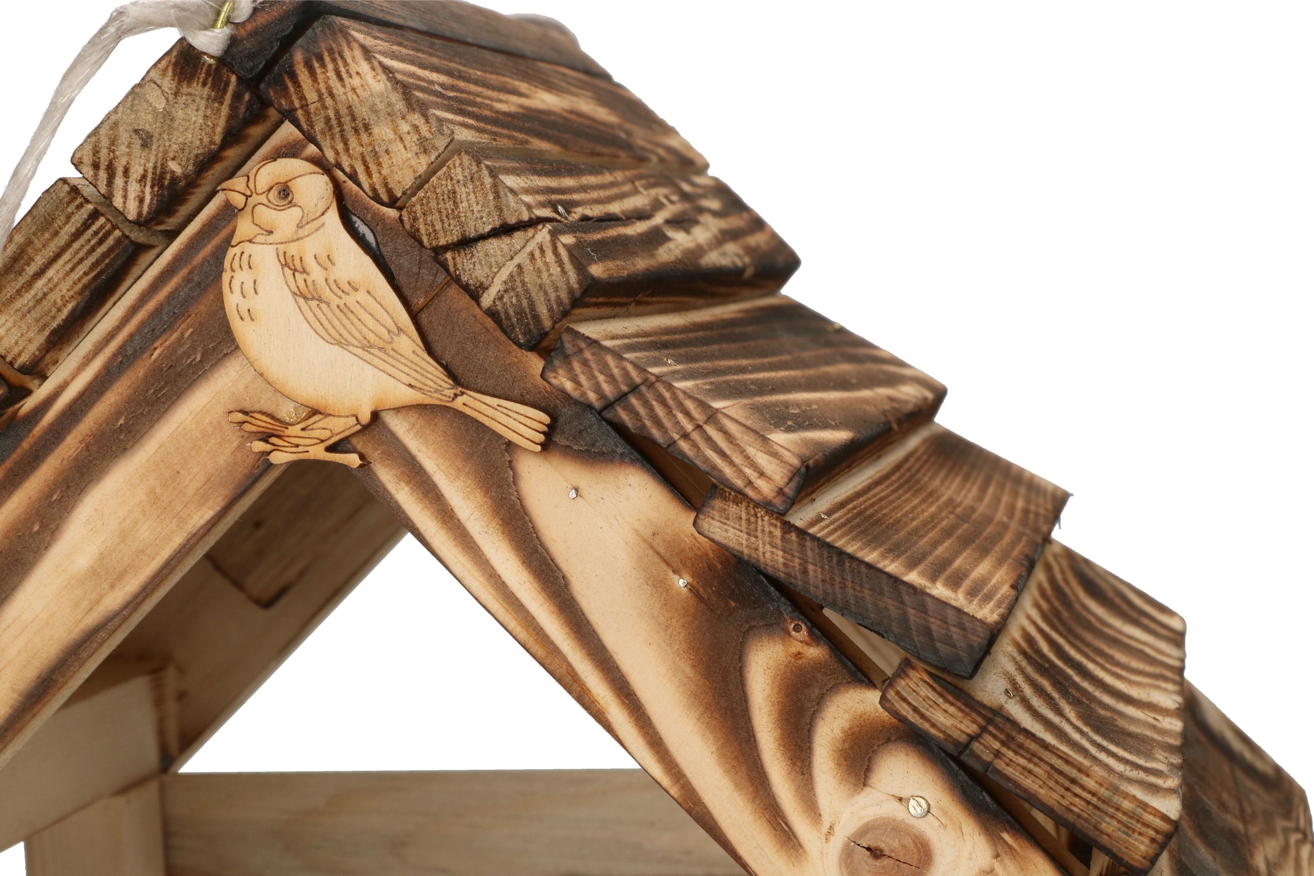 - Массив древесины защищен от внешних факторов обжигом, поэтому кормушка прослужит долгие годы.