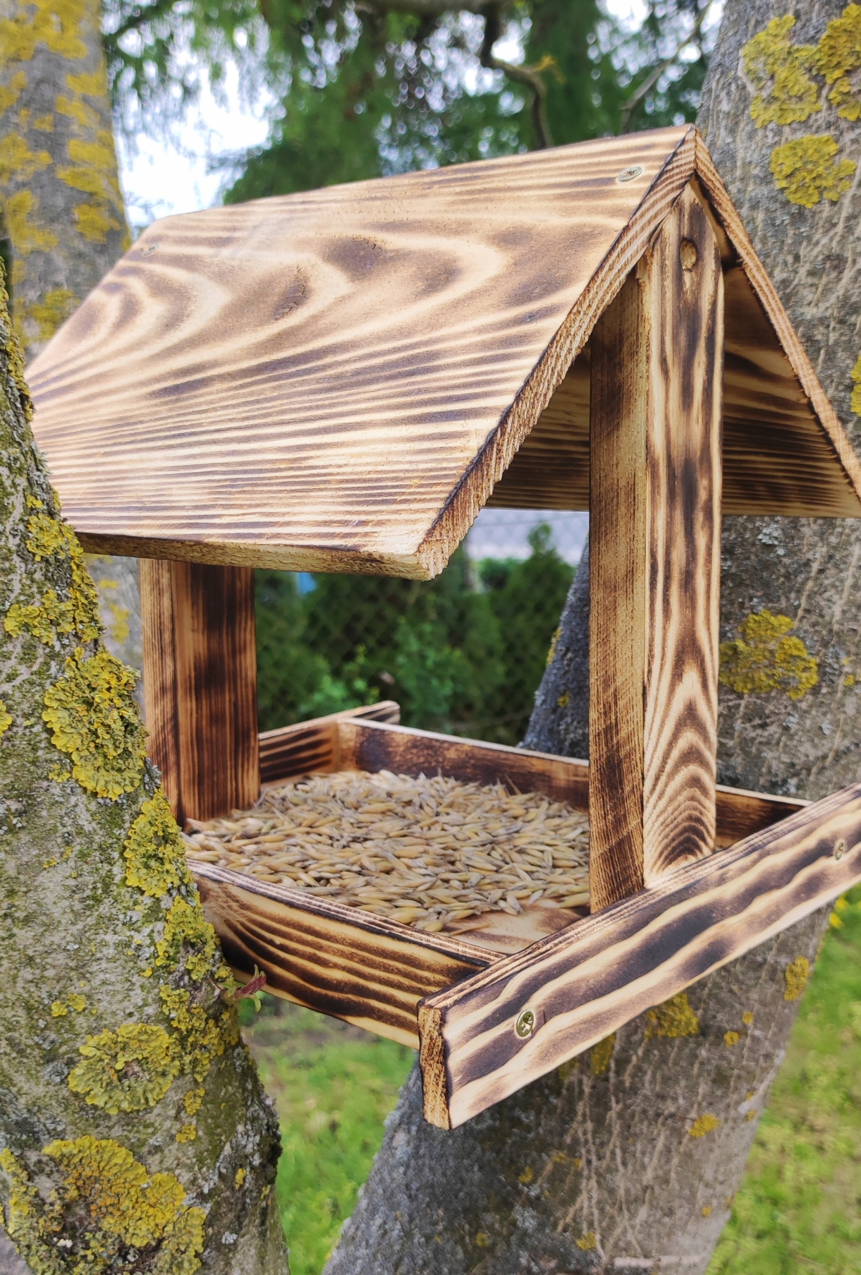 кормушка является легким, весит около 800 граммов, чтобы его можно было приостановить, не опасаясь. Несмотря на низкий вес, благодаря используемым винтовым винтам вся структура долговечна и устойчива к погодным условиям. В верхней части Карминики отверстия сделаны с обеих сторон, через которые вы можете перетаскивать веревку и повесить фидеру где угодно. Крыша с высокой установкой заставляет птиц не бояться лететь к кормушке. Вместе с фидером джутовая струна с длиной одного метра, на которой может быть приостановлен фидер.