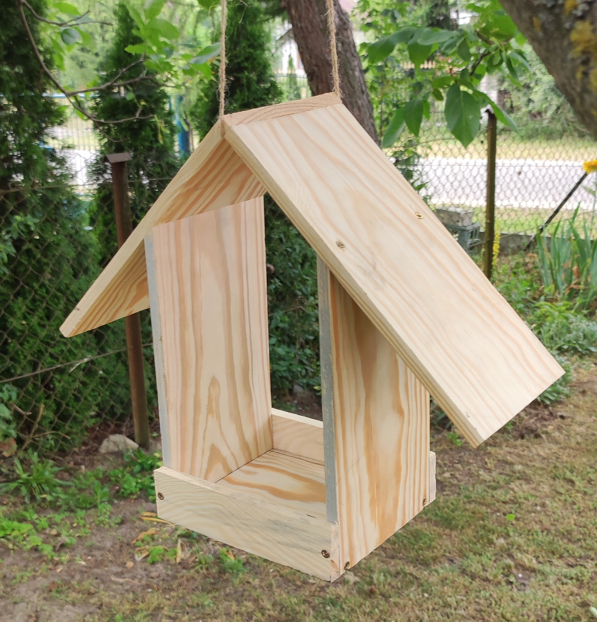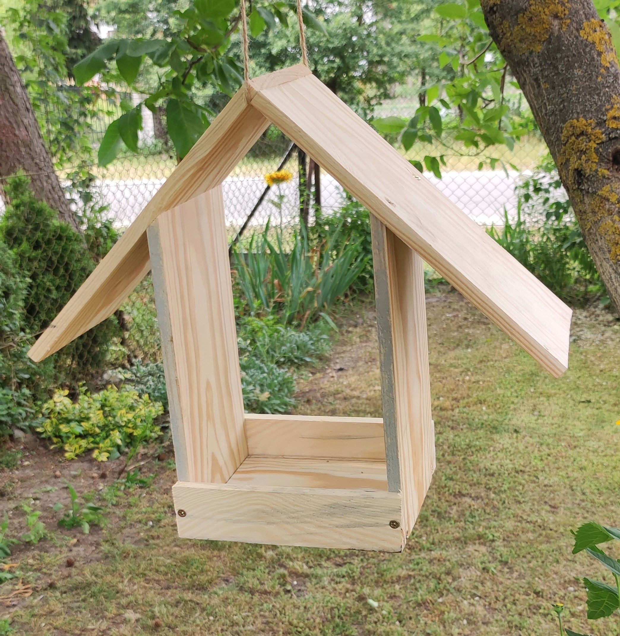 - The feeder is attached to a jute string with Длина одного метра для приостановки кормушки
