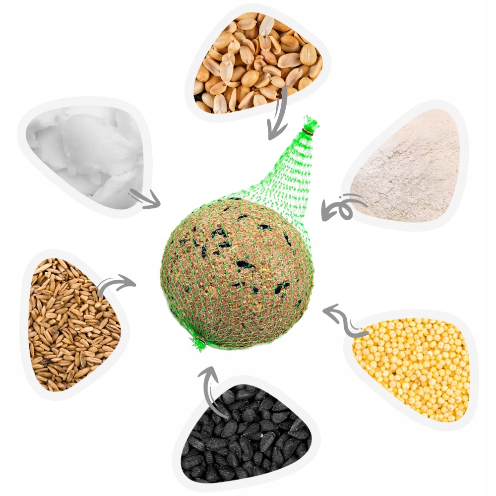 ЖИРНЫЕ ШАРИКИ ДЛЯ ЗИМУЮЩИХ ПТИЦ 100 ШТ. , благодаря которым они обеспечивают птиц высокой дозой энергии, необходимой им для того, чтобы пережить зиму. Это идеальный способ подкормки птиц зимой, поскольку они подходят для кормления всех птиц, находящихся на зимовке в Польше.