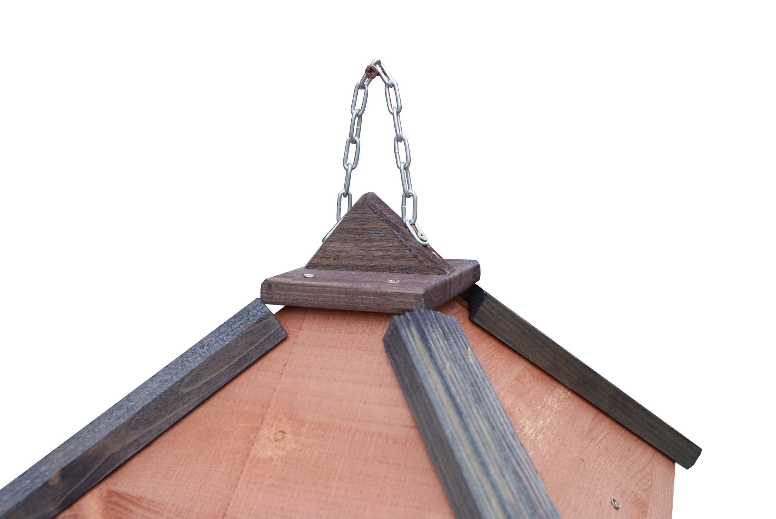 Он полностью изготовлен из высококачественной древесины хвойных пород. Он защищает корм от намокания, а птиц от хищников.