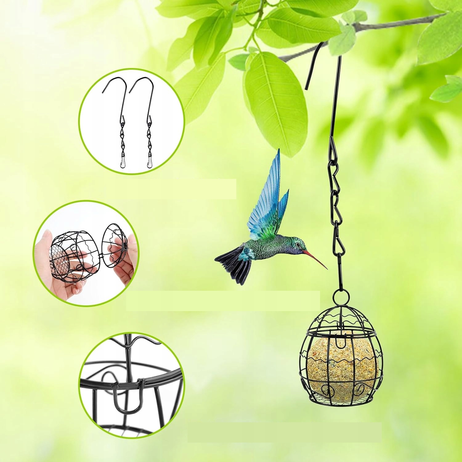 В комплект входят 6 S-образных крючков с цепочкой, которые позволяют быстро повесить кормушку на дерево, балюстраду или окно. Благодаря прочным крючкам установка устойчива и удобна.