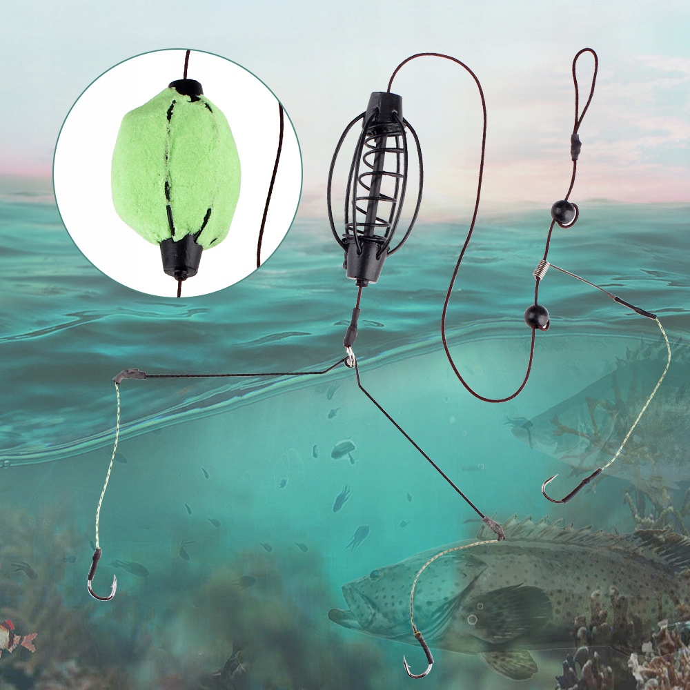 Полный рыболовный набор с корзиной для приманки типа «арбуз» весом 25г. Оснащен тремя острыми крючками, закрепленными на прочной оплетке, и пружинной корзинкой, позволяющей размещать наживку впритык к приманке. Благодаря этому рыба быстрее находит приманку, что повышает эффективность ловли.