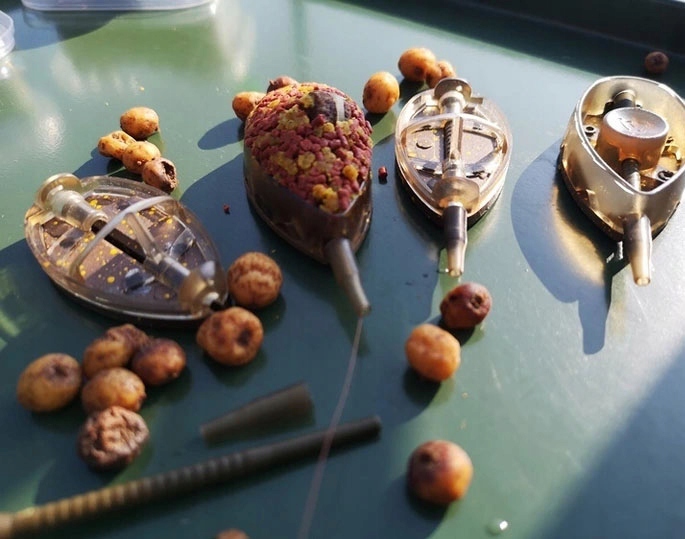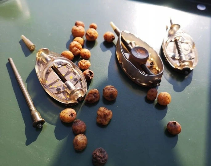 - кормушка для крючка с наживкой - наживка, помещенная на кормушку кормушки, остается прекрасно представленной кормящейся рыбе даже при полном вымывании приманки из кормушки,