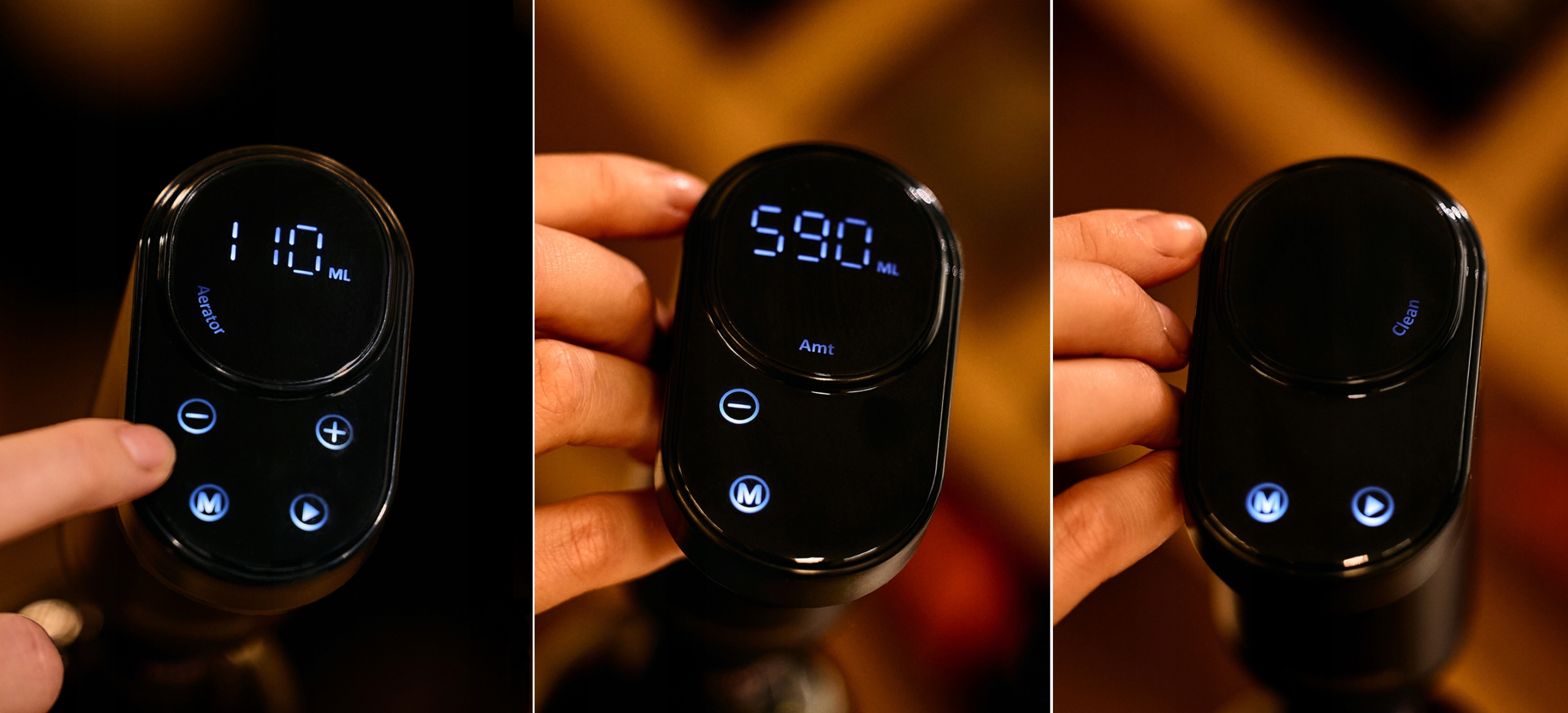 ✅ Точная дозировка 1–999 мл – идеальные порции для дегустации или коктейлей, всегда без проливания и потери. Управление кнопкой или прикосновением к стеклу.