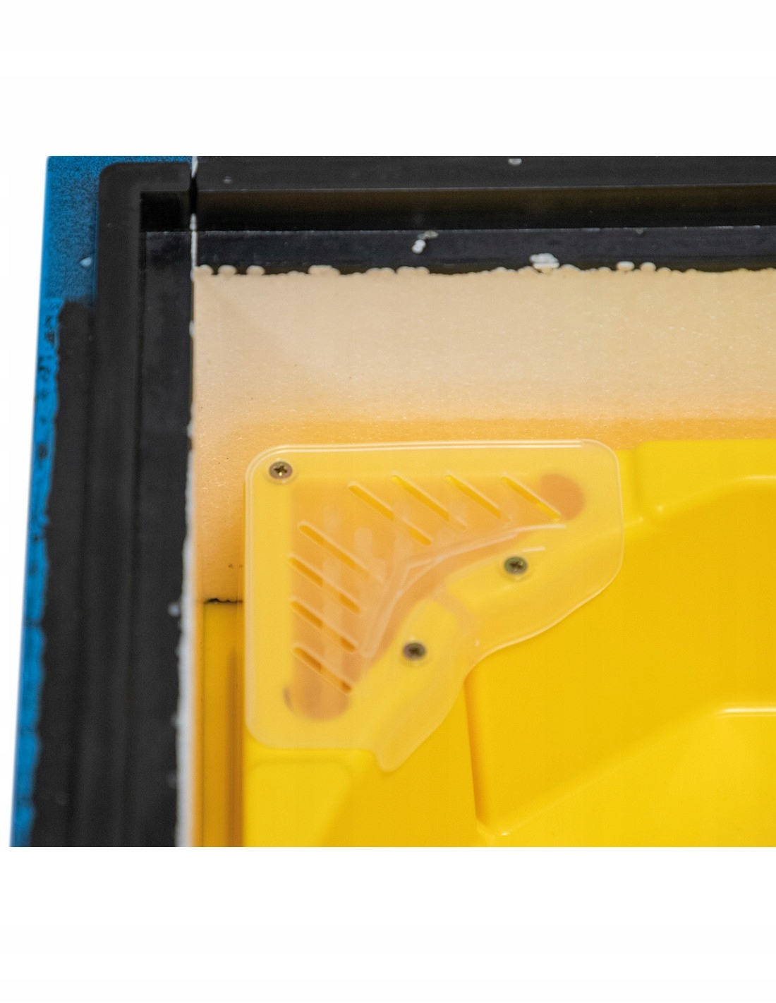 Инновационное решение также включает в себя 4 дополнительные камеры, расположенные по углам питателя. Благодаря уменьшенной площади поверхности камеры нагреваются быстрее из-за активности роя. В результате пчелиный сироп не остается на дне, а соответствующая температура корма делает его более привлекательным для пчел. Это особенно важно при попытке выровнять улей, поскольку наклон корпуса не влияет на наличие и температуру сиропа внутри устройства.