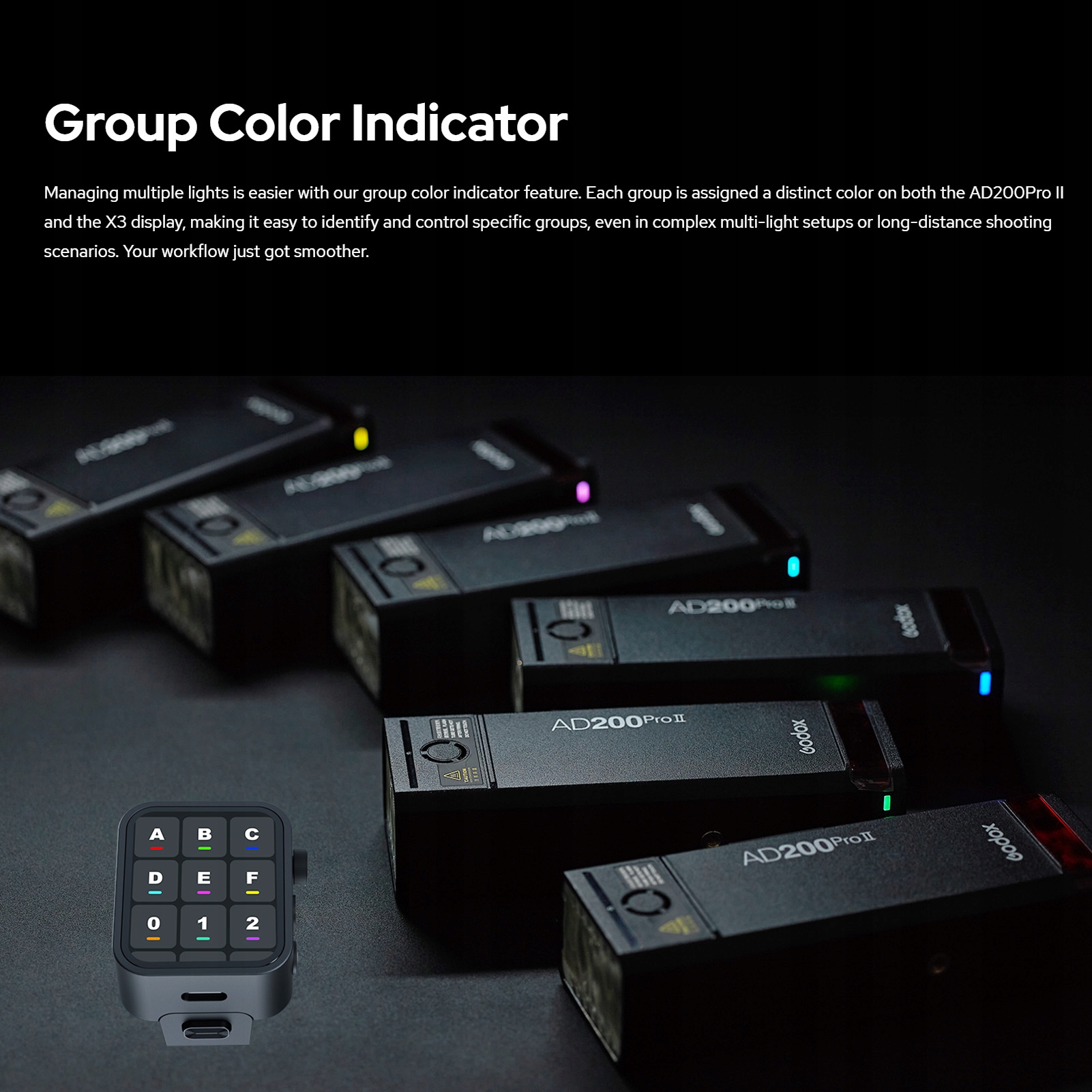 4. Пара одного персонала из X3: AD200PRO II поддерживает беспроводную синхронизацию с одним краном с x3 Trigger. Благодаря простому прикосновению кнопки беспроводной синхронизации x3 и значков синхронизации AD200PRO II, ваши устройства будут синхронизироваться без усилий, позволяя вам сосредоточиться на творчестве, и меньше на конфигурации