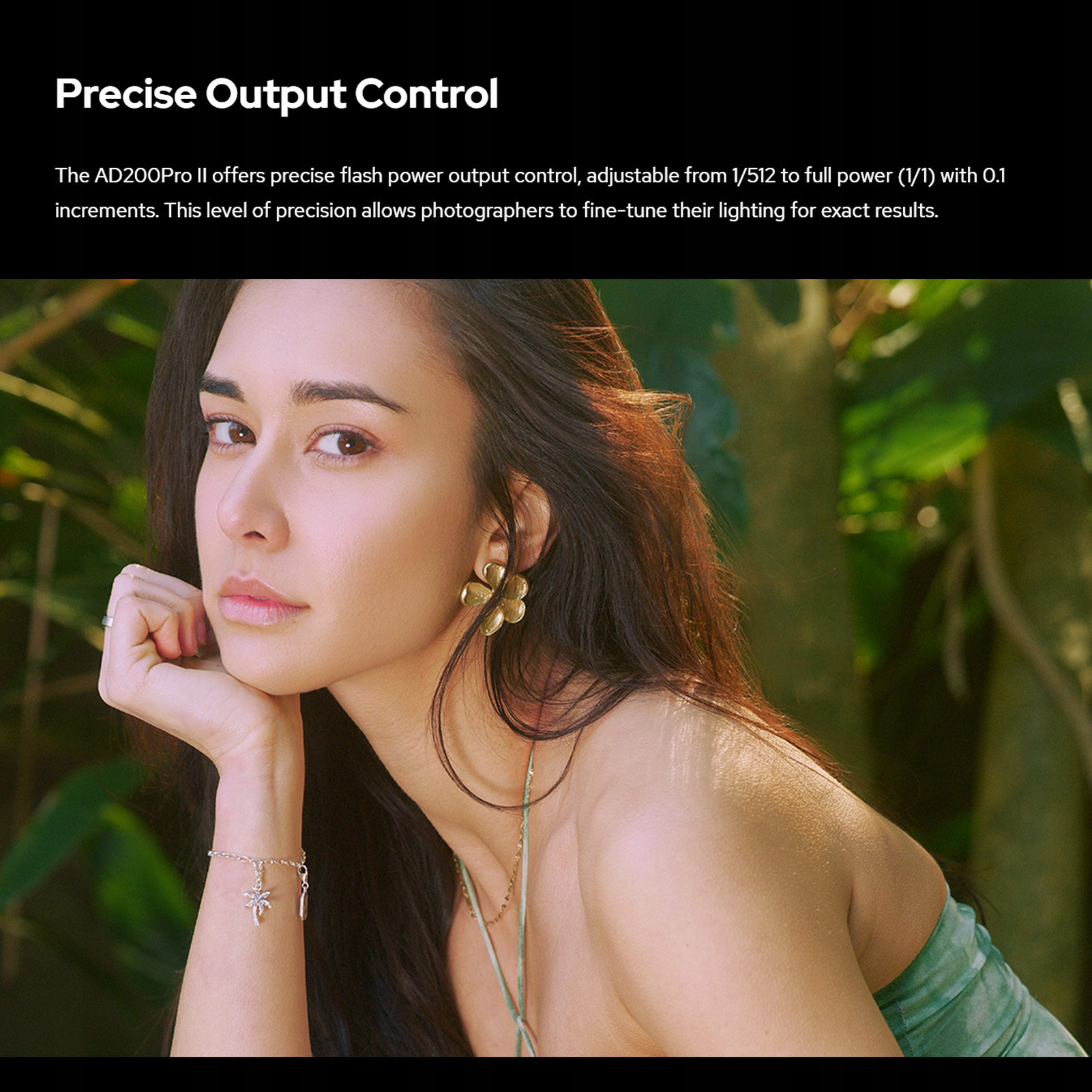 2. Тщательный выходной элемент управления выходом: AD200PRO II предлагает точное управление вспышкой, регулируемое от 1/512 до полной мощности (1/1) с увеличением 0,1. Этот уровень точности позволяет фотографам отрегулировать свое освещение, чтобы получить точные результаты