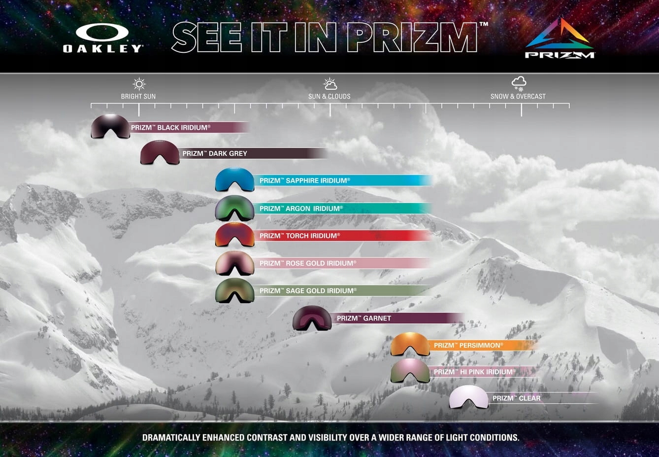 Самой важной особенностью новых очков Oakley Prizm является повышенная контрастность, специально адаптированная к характеристикам снега. Благодаря этому решена одна из самых больших проблем, с которой сталкиваются любители зимних видов спорта – видимость могула, льда и местности. Кроме того, технология Prizm прекрасно работает в широком диапазоне погодных условий, делая очки с таким типом стекла более универсальными и нет необходимости заменять стекло при смене погоды