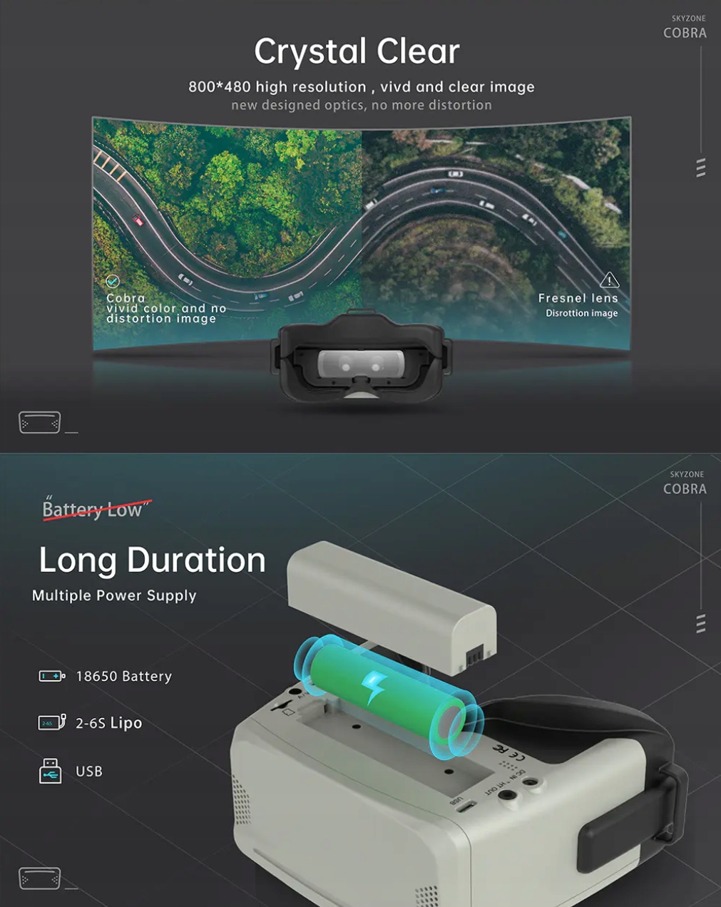 FPV Goggles Skyzone Cobra SD - разнообразие 5,8 ГГц 16: 9
