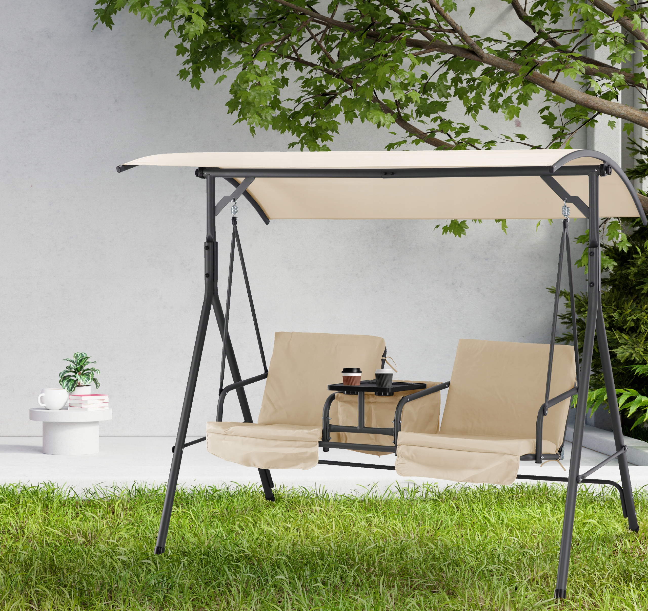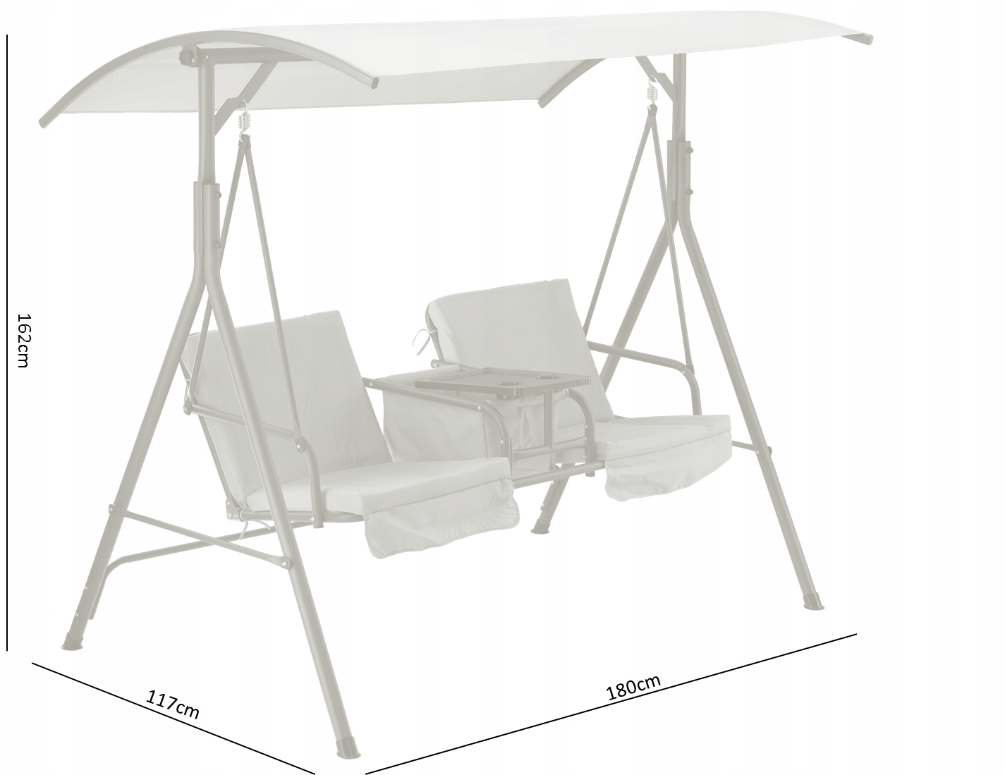 ГОЙДАЛКА САДОВА ДВОМІСНА З ПІДСТАВКОЮ ДЛЯ ЧАШОК, РЕГУЛЮВАННЯ ВЕРХУ, БЕЖЕВА