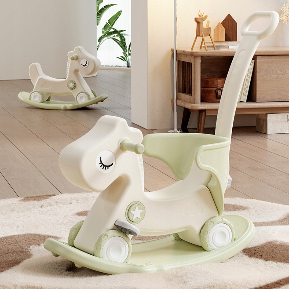 - лошадь -качалка для детей на колесах, которую можно использовать в качестве Bloing Bike