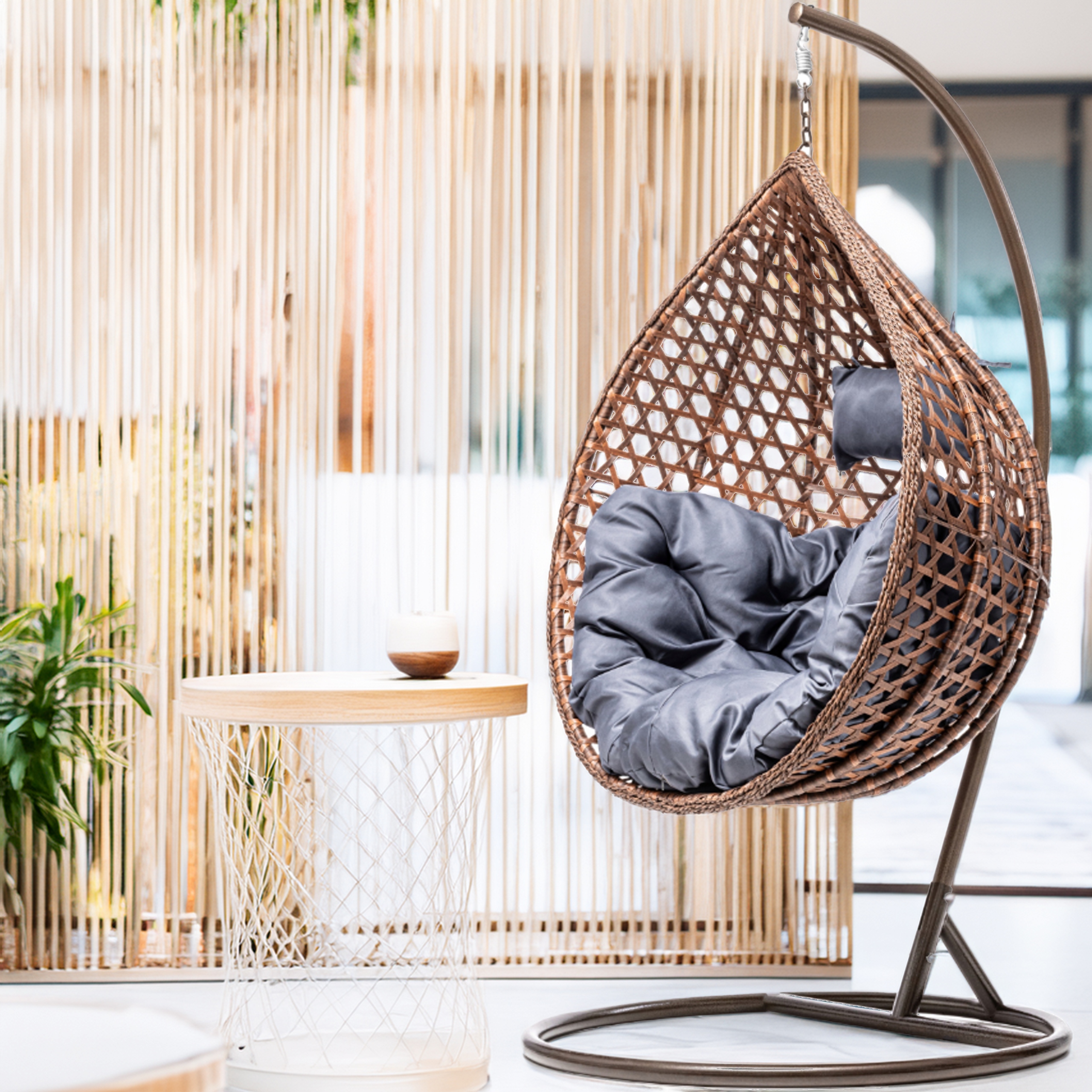 Высококачественное садовое кресло canza b> из материала, имитирующего бамбук, представляет собой сочетание элегантности и функциональности. 🌱✨ Благодаря привлекательному, плотному плетению наш кокон выглядит не только потрясающе, но и обеспечивает исключительную долговечность. 🔝