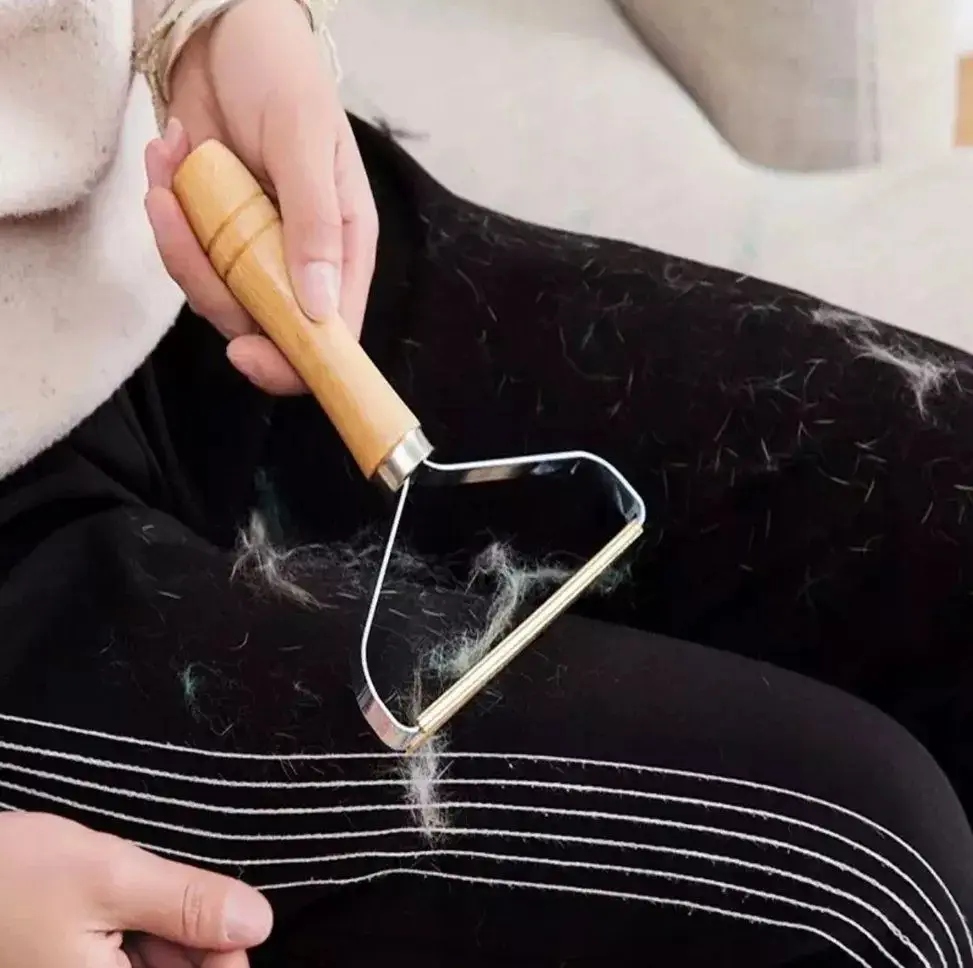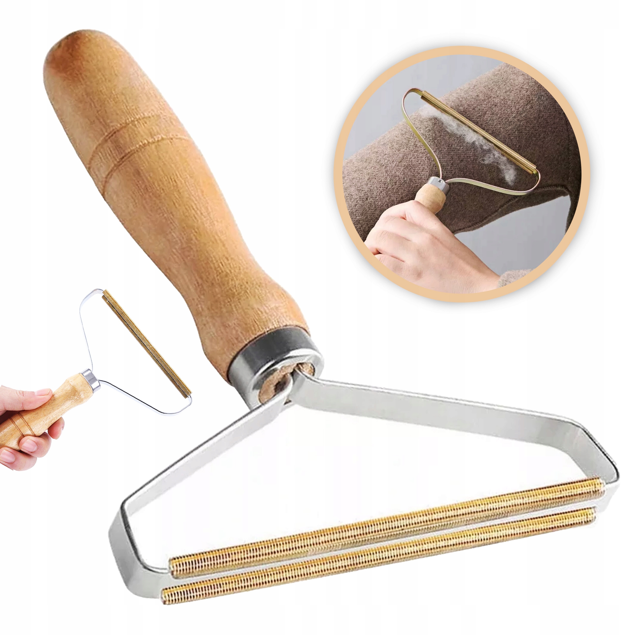 Бритва с удобной деревянной ручкой легко удалит катышки со свитеров, пальто или толстых шарфов, придав им вид новых.