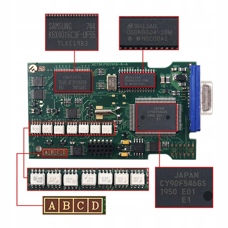 Включает мультиплексор K-Line, интерфейсы CAN-BUS и шину SAE J1850, предлагая не только считывание кодов ошибок, но также полное сканирование автомобиля и реальное отображение данных времени.