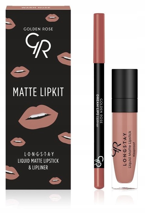 Набор для губ, содержащий стойкую матовую помаду и карандаш для губ соответствующего цвета.