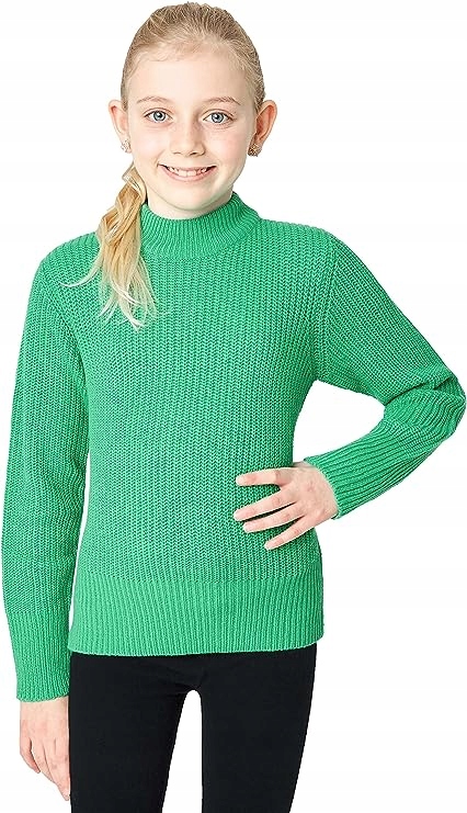 - Теплый и удобный свитер для девочки, в наличии зеленый цвет. Блузки с высоким воротником и длинными рукавами для девочек имеют резинку на талии и рукавах.