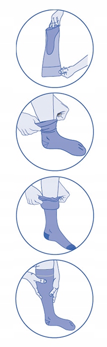 Большим удобством является использование специальных приспособлений для нанесения компрессионных изделий.