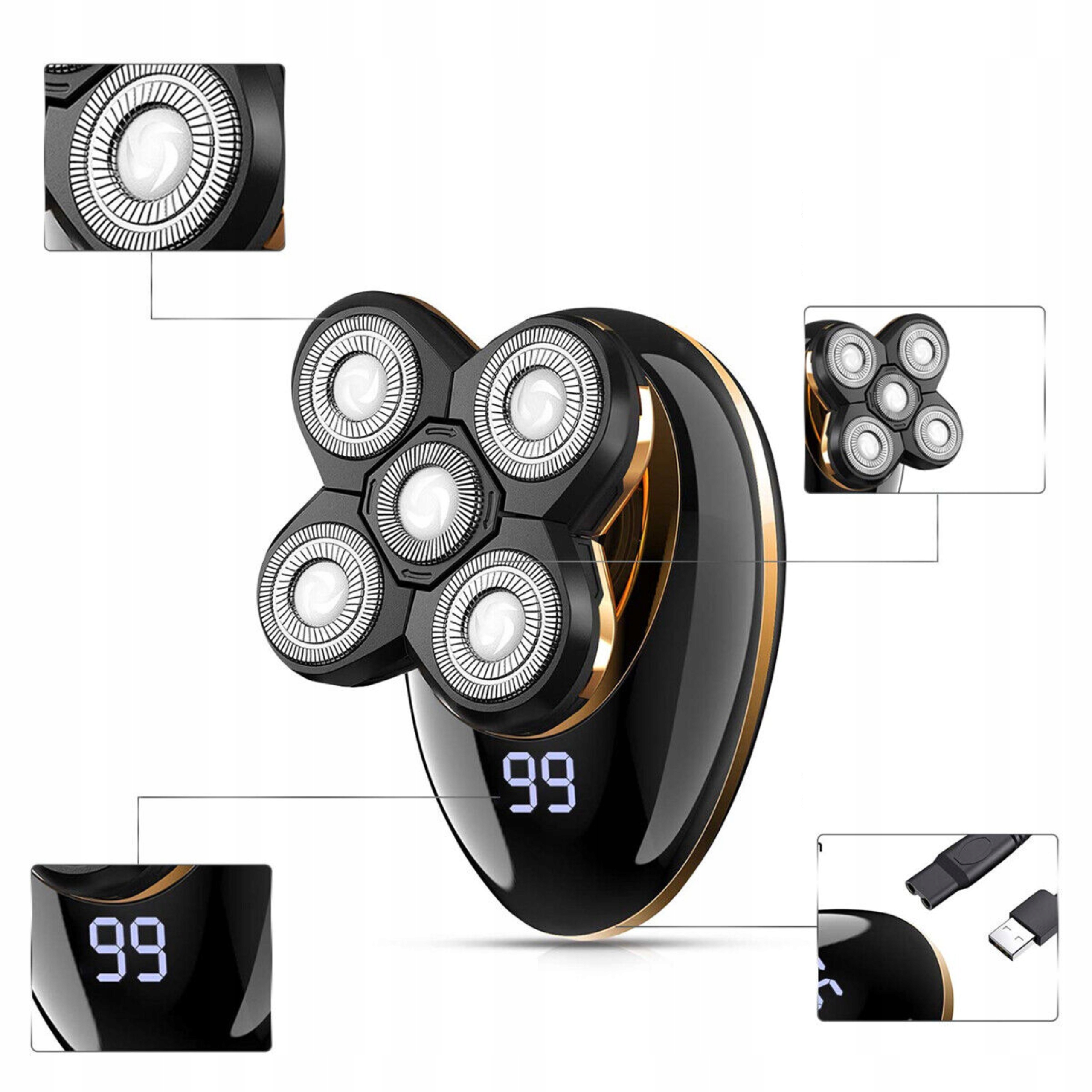 Электробритва с 5 съемными головками, в которой есть все необходимое для стрижки волос и ухода за лицом.