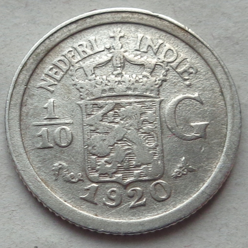ГОЛЛАНДСКАЯ ИНДИЯ - 1/10 ГУЛЬДЕНА 1920 - серебро