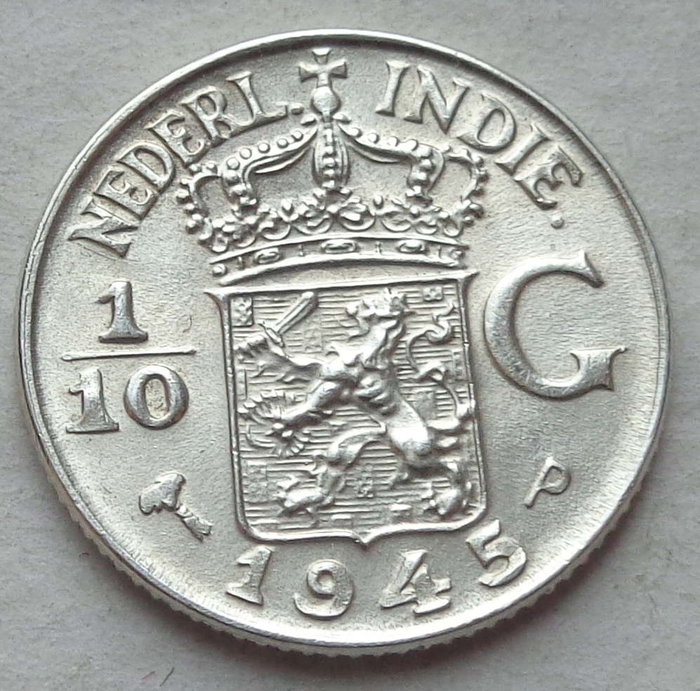 ГОЛЛАНДСЬКА ІНДІЯ 1/10 ГУЛЬДЕН 1945 P - срібло 1