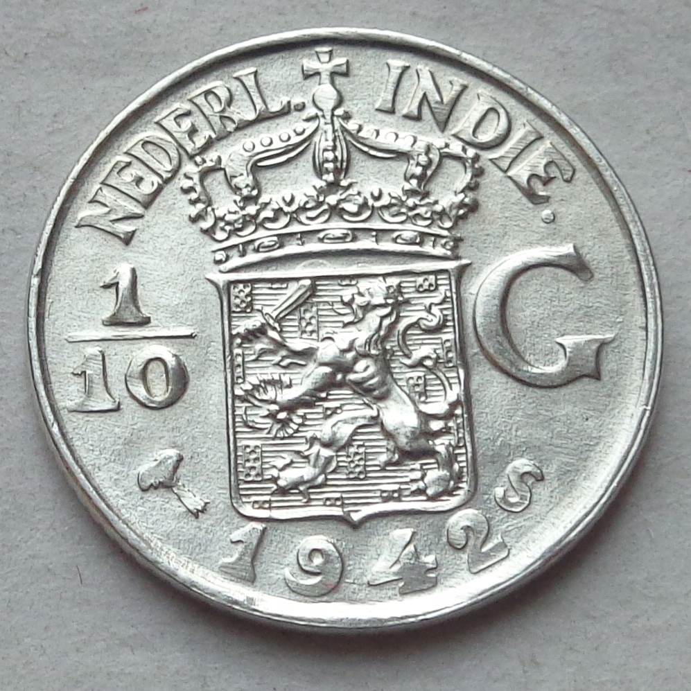 ГОЛЛАНДСЬКА ІНДІЯ 1/10 ГУЛЬДЕНА 1942 S - срібло