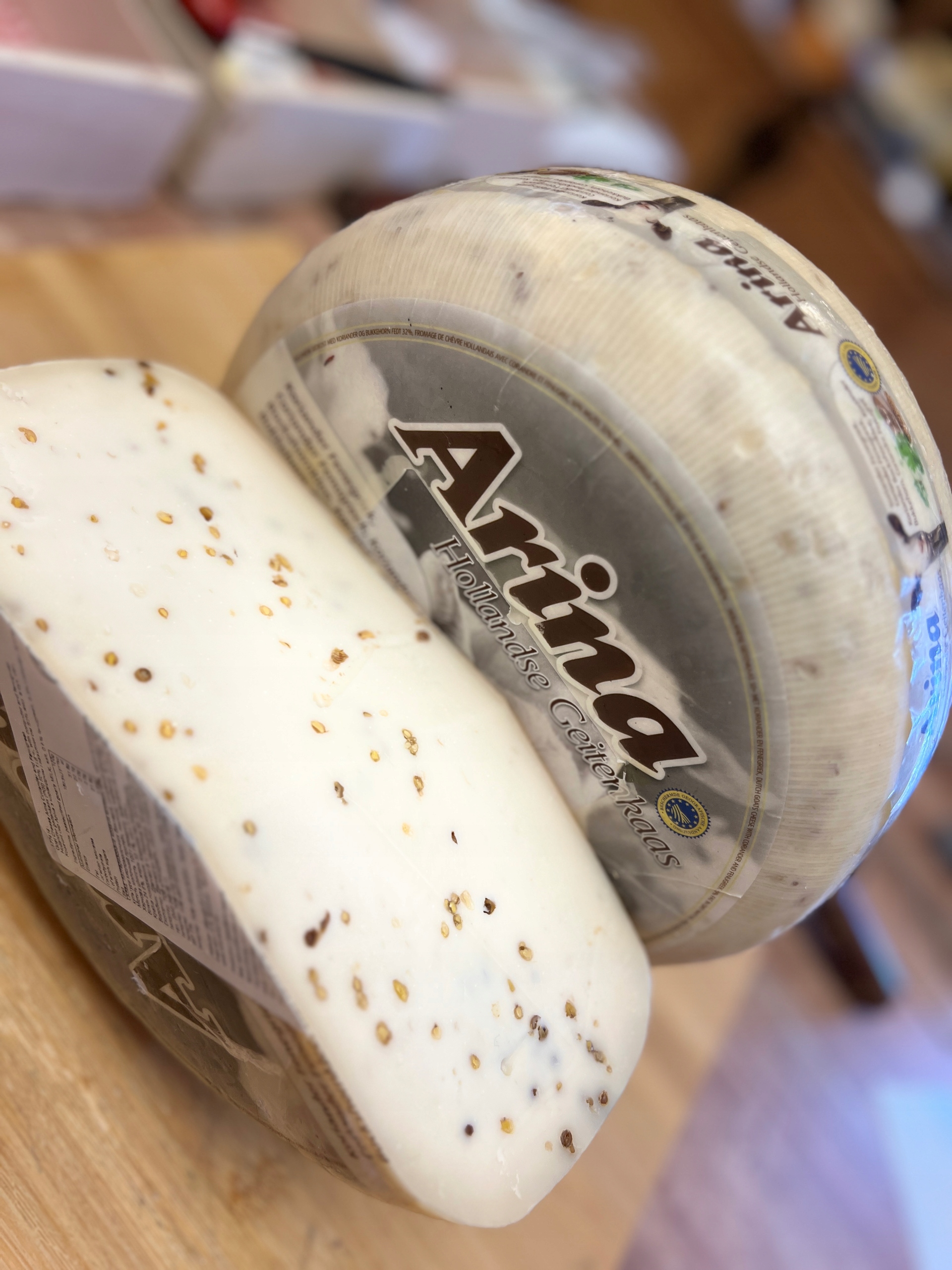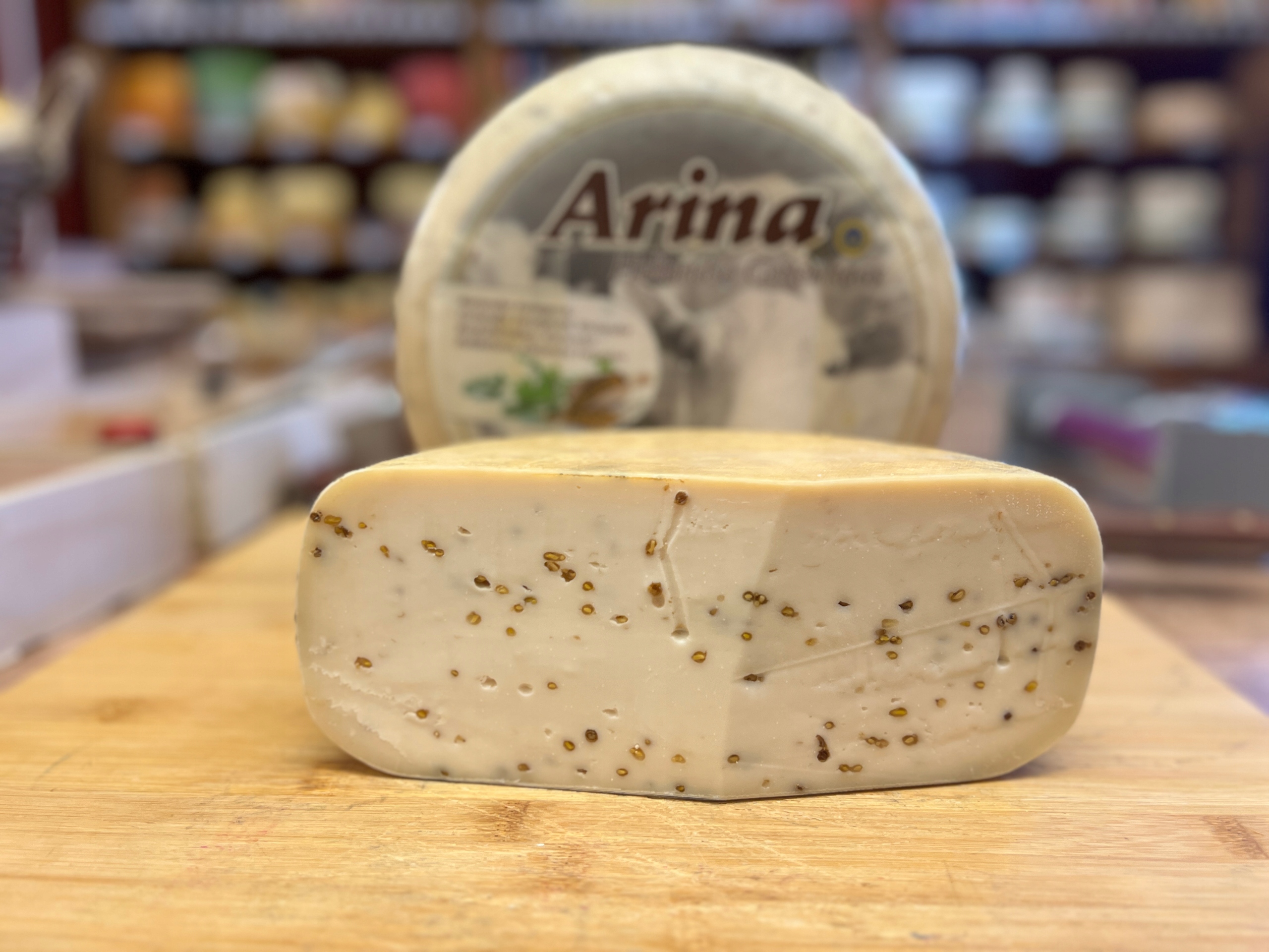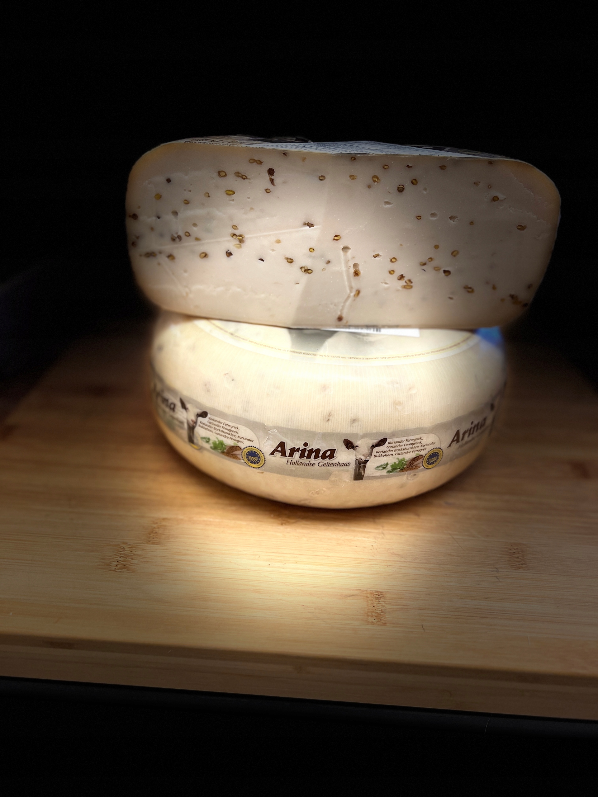 arina -это голландский козий сыр с уникальным персонажем: полу -хард и шелковистый. Обратите внимание, что вкус грибов и орехов. G