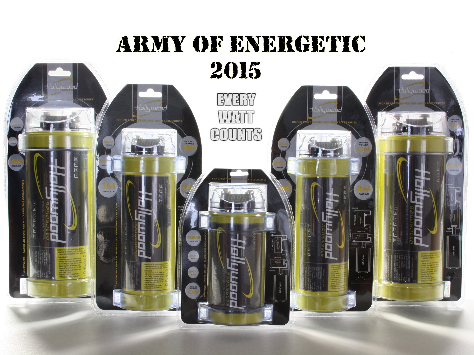 Основной задачей буферных конденсаторов Hollywood Energetic является сбор и хранение энергии, которую при необходимости можно быстро извлечь из нее и использовать для поддержки установки, питающей автомобильный усилитель мощности. Чаще всего это происходит при прослушивании более громкой музыки, содержащей более выраженные басовые импульсы, во время которой усилитель потребляет кратковременный, но гораздо больший ток, что чаще всего приводит к колебаниям и падениям напряжения в установке, питающей автомобильную аудиосистему. Такие временные перебои с электроэнергией и перепады напряжения отрицательно влияют на стабильность работы и параметры усилителя, что может привести к появлению дополнительных искажений воспроизводимого аудиосигнала. Эти временные дефициты энергии в установке электроснабжения могут быть частично восполнены и уравновешены запасом, запасенным в конденсаторе. В результате минимизируются эффекты падения импульсов и колебаний напряжения, питающего усилитель, что стабилизирует условия его работы, что приводит к повышению качества воспроизводимого звука. Также следует четко подчеркнуть, что никакой конденсатор не является дополнительным источником питания или устройством, используемым для смягчения или устранения последствий плохо спроектированной или неправильно построенной установки, питающей автомобильную аудиосистему. Буферный конденсатор служит лишь поддерживающим банком энергии, сохраняя ограниченную ее часть, которая при необходимости может быть быстро освобождена и использована усилителем, особенно во время кратковременных импульсов с более высоким потреблением тока. По сравнению даже с самой лучшей батареей, конденсаторы Hollywood Energetic имеют очень низкое внутреннее последовательное сопротивление (ESR), что делает импульсную передачу энергии от конденсатора к усилителю (и от установки к конденсатору, во время его зарядки) очень быстрой, Благодаря чему конденсаторы Hollywood Energetic служат еще и устройствами, дополнительно поддерживающими и разгружающими работу аккумулятора во время быстроменяющихся импульсов тока, которые обычно отрицательно влияют на общий срок службы каждого аккумулятора. Дополнительно конденсаторы Hollywood Energetic стабилизируют и сглаживают (фильтруют) импульсные скачки и помехи, возникающие в системе электропитания автомобиля.