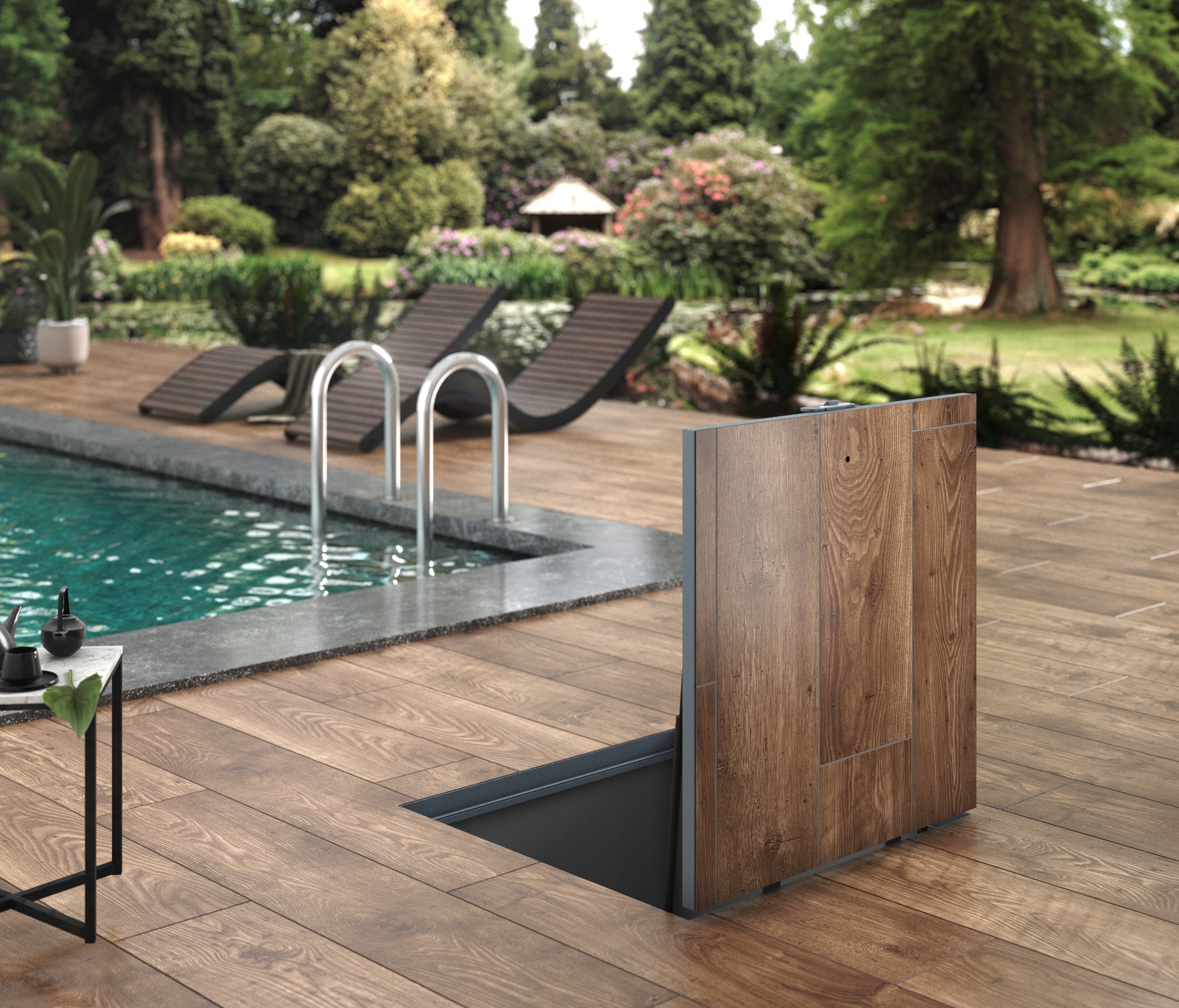 , заблокированной ключом, поднятым с помощью телескопических цилиндров.