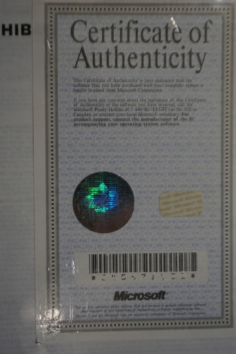 СЕРТИФИКАТ ПОДЛИННОСТИ МАЙКРОСОФТ с голограммой
