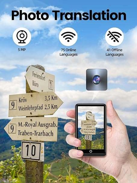 <р> 【Мощная функция перевода изображений】Наш портативный языковой переводчик, оснащенный камерой высокого разрешения, также предлагает функцию перевода изображений. Просто сфотографируйте меню, дорожные знаки, журналы или этикетки, и переводчик выполнит онлайн-перевод на 75 языков. Офлайн-перевод доступен на 41 языке. <р> 【Дополнительные функции перевода】ChatGPT предоставляет интеллектуальные голосовые услуги и поддерживает экспорт текста. Он также может конвертировать записи в текст и одновременно переводить их на другие языки. Наш языковой переводчик сочетает перевод текста с изучением языка, отправляя вас в увлекательное путешествие по миру языков. <р> 【Универсальное приложение】Устройство перевода поддерживает беспроводные наушники Bluetooth и групповой перевод. Оснащенный 4-дюймовым сенсорным экраном HD и встроенной литиевой батареей емкостью 1500 мАч, он обеспечивает 5-7 часов непрерывной работы без подзарядки и до 7 дней в режиме ожидания. Компактный и портативный, идеально подходит для путешествий, изучения иностранных языков и деловых поездок. <р> 【Надежный подарок】Переводчик языка NeotrixQI также поставляется с конвертером валют, конвертером единиц измерения и мировым временем. Его надежность и простота использования делают его идеальным спутником в путешествии! Будь то подарок семье, друзьям или самому себе, это самый практичный подарок, который поможет вам преодолеть языковой барьер и улучшить свои коммуникативные навыки.✅Параметры продукта