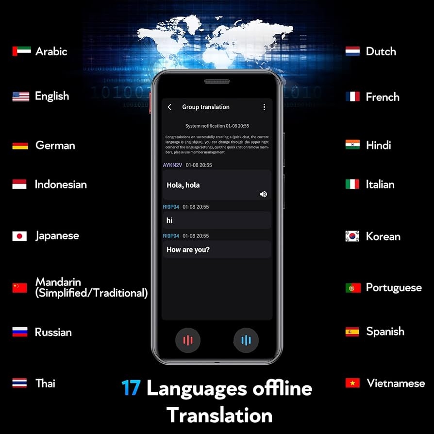 Практическая функция автономного перевода: этот автономный переводчик работает без подключения к Интернету, телефона, приложения, контракта или подписки и поддерживает до 16 автономных языков, включая английский, французский, немецкий, итальянский, португальский, голландский, испанский, русский, арабский, китайский, японский, корейский, хинди, индонезийский, тайский и вьетнамский. Это позволяет легко общаться даже без подключения к Интернету.