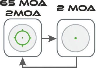 aro series может быть выбрана с точкой из 2 MOA в красном, зеленом или золотом. для стрелков, требующих переключенной формы 65 MOA, называемой системой MRS Holosun, может быть повторно подключена к красному, зеленому или золотому.